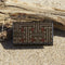 Authentic Oshima Tsumugi business card holder crafted from dark, woven silk with a subtle geometric pattern.