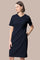 Smart Stretch V-neck Essential Dress in black, a knee-length, short-sleeved knit dress.
